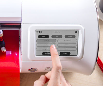 - Pre-Cut Settings: Use the built-in presets for most of the Siser materials. If you use materials such as cardstock or paper you can create your own custom settings so they're just a press away.