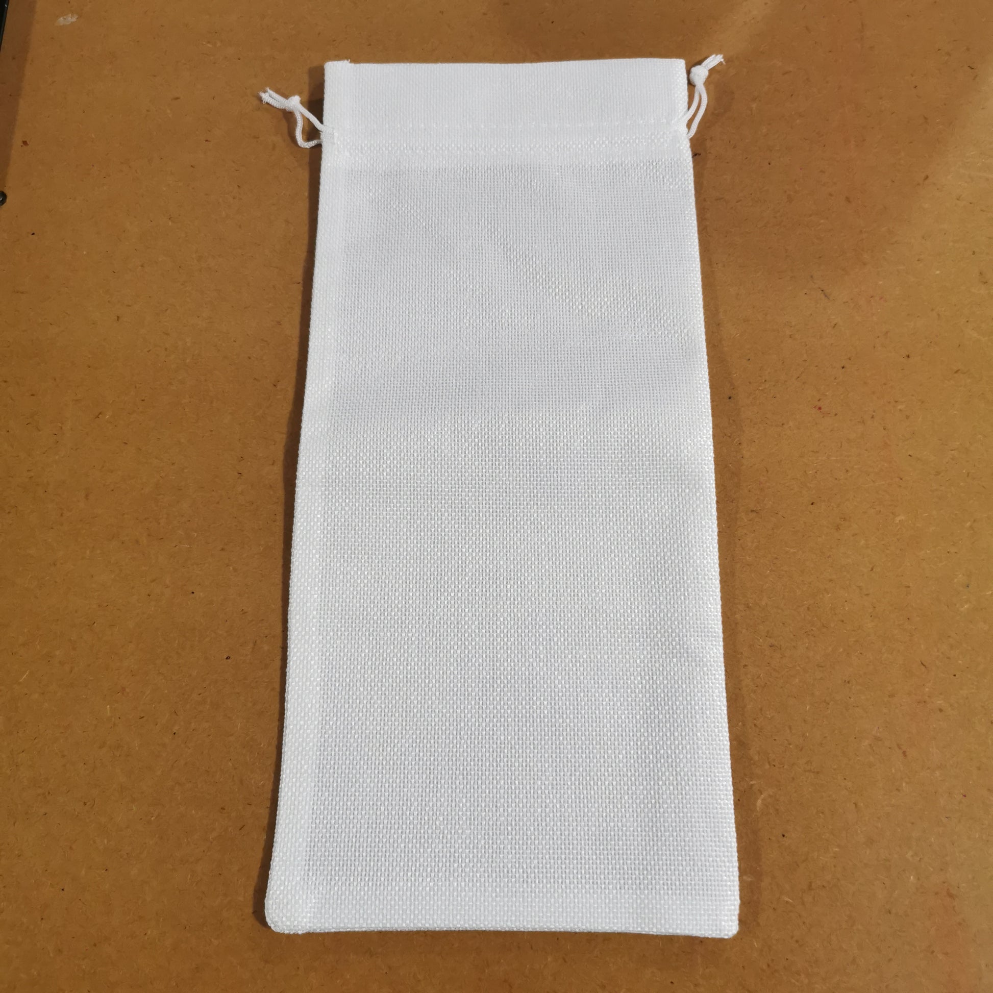 White coloured canvas wine bottle drawstring bag.